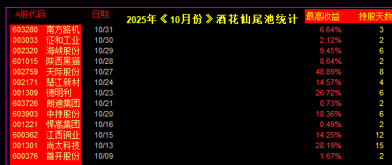 10月份《酒花仙 尾1支》主板擒牛统计