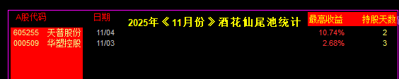 11月份更新《酒花仙 尾1支》 主板擒牛统计