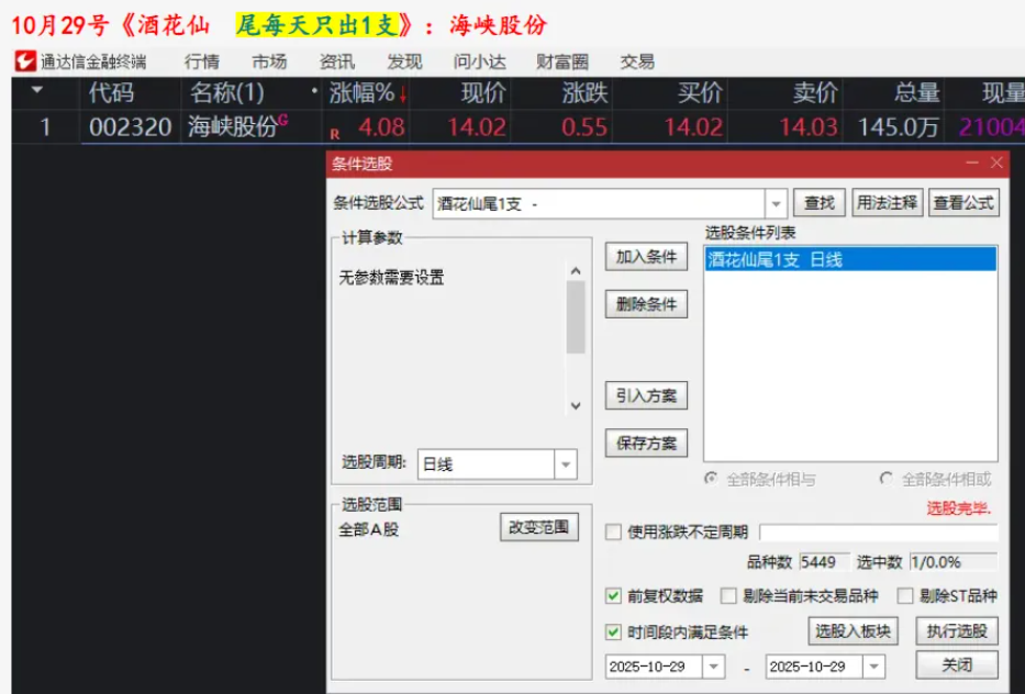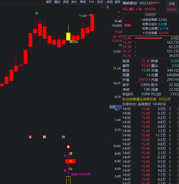 10月29号《酒花仙》海峡股份  主板擒牛 拉一波当前涨停10%