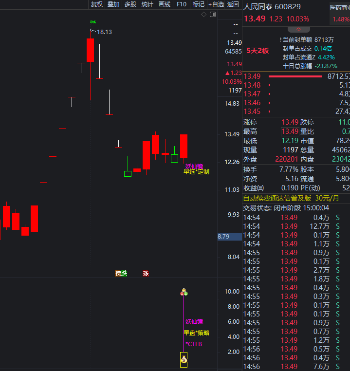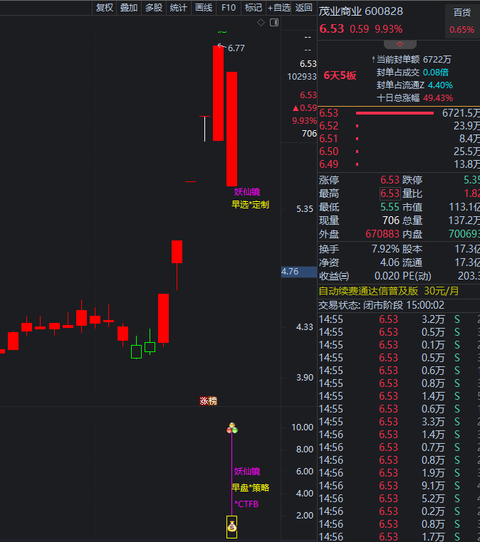 12月2号《妖仙镜》人民同泰 板10% 茂业商业 板10%
