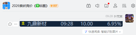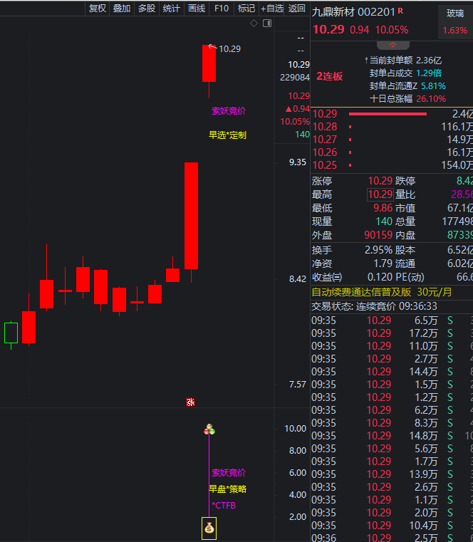 12月24号《索妖竞价》实时预警:九鼎新材  涨停10%