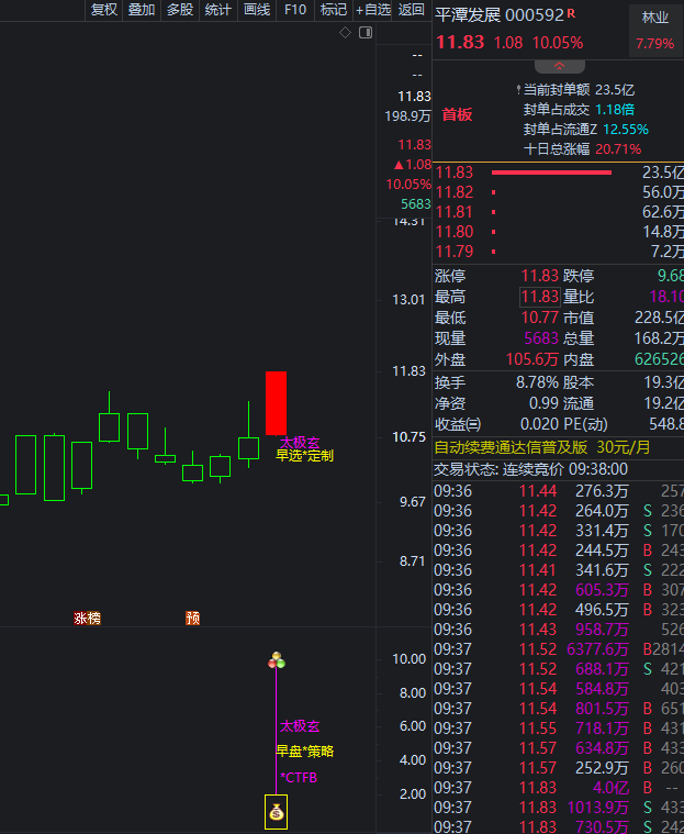 2月5号《太极玄》 主板擒牛捉首板:平潭发展  实时预警 当天涨停10%