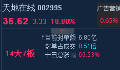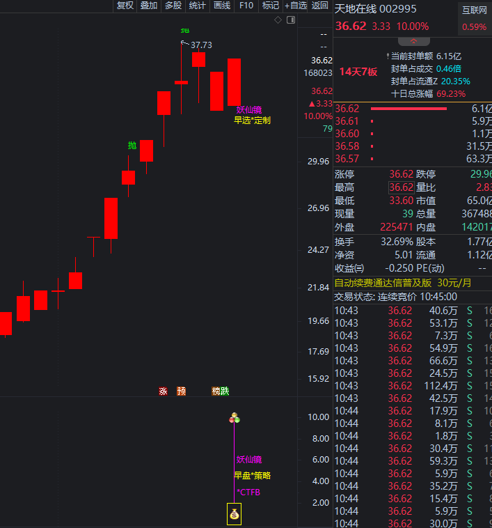 2月5号《妖仙镜》天地在线  实时预警  当天涨停10%