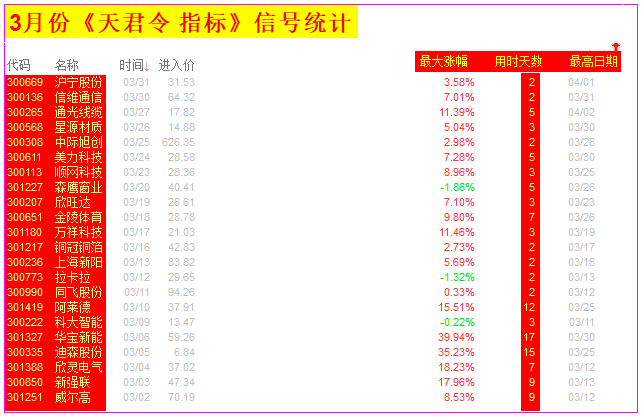 2026年/4月份+3月+2月+1月《天君令》 每天信号统计