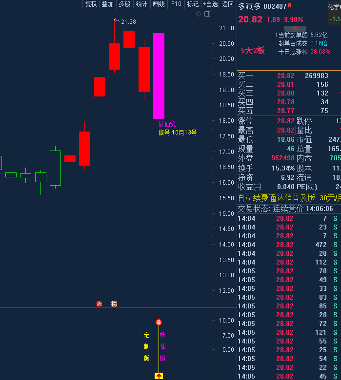 10月13号《妖仙镜》出2支 盘中实时实战小圈公开 擒板