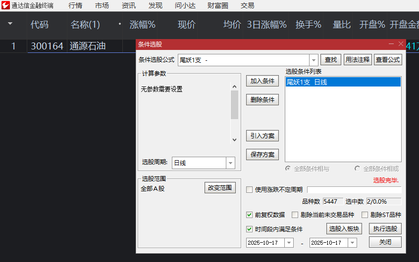 10月17号选股《尾妖1支》:通源石油 大涨超10% 创业尾擒牛