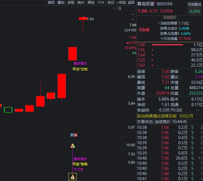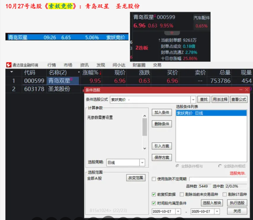 10月27号选股《索妖竞价》:青岛双星   近3天涨停20%