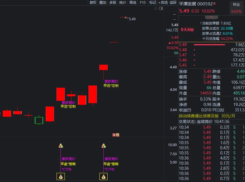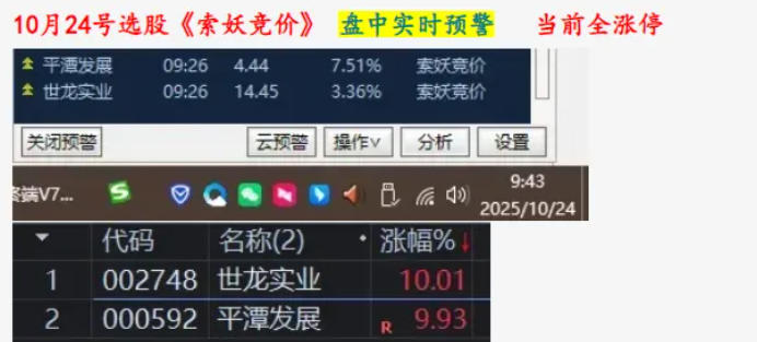 10月24号选股《索妖竞价》 平潭发展  近4天连板 30%