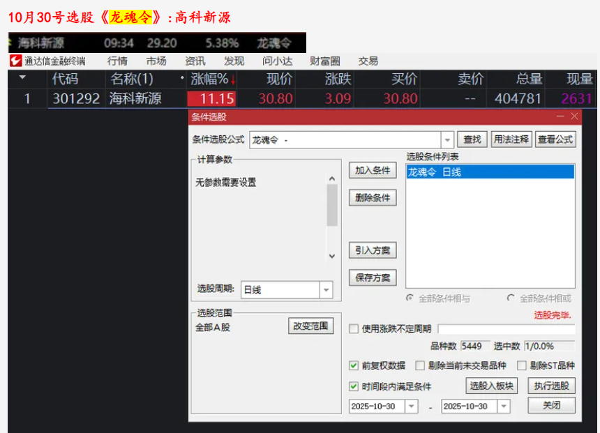 10月30号选股《龙魂令》:海新新源  隔天涨停20%