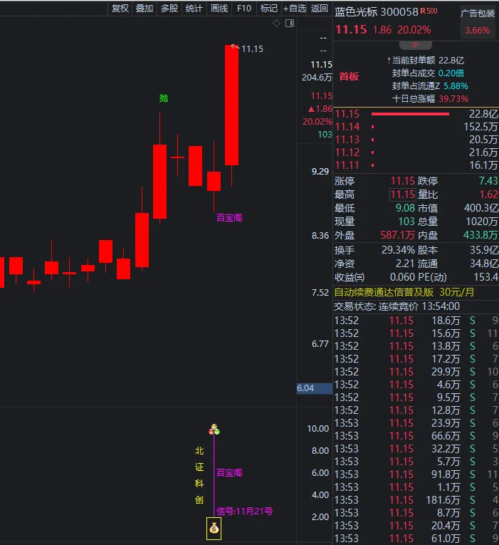 11月21号《百宝阁》:蓝色光标  板20%
