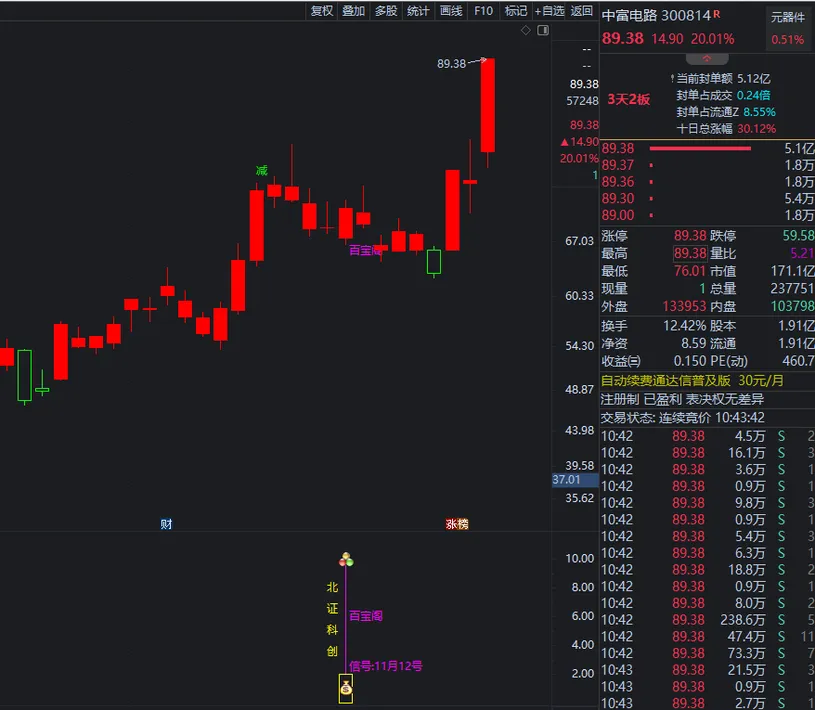 11月12号《百宝阁 尾1支》:中富电路  2天40%