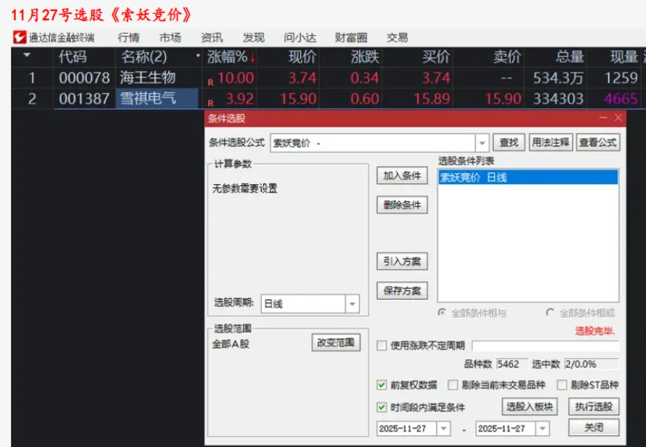 12月2号/1号/28号/27号选股《索妖竞价》:冰山冷热 国晟科技 海王生物 4连板