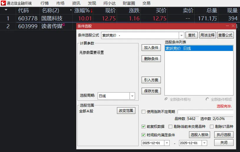 12月2号选股《索妖竞价》:冰山冷热  2连板