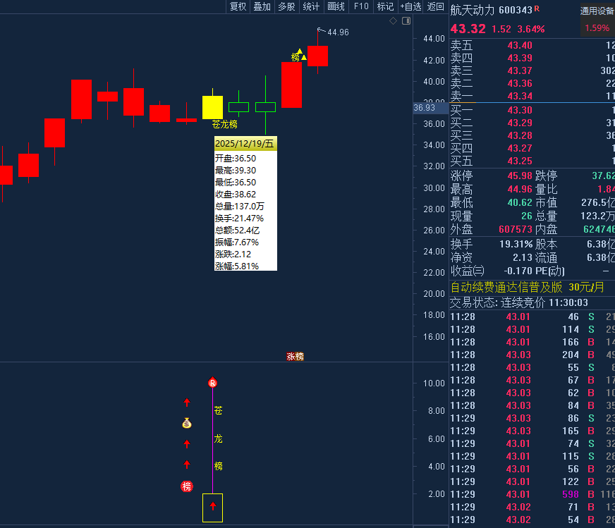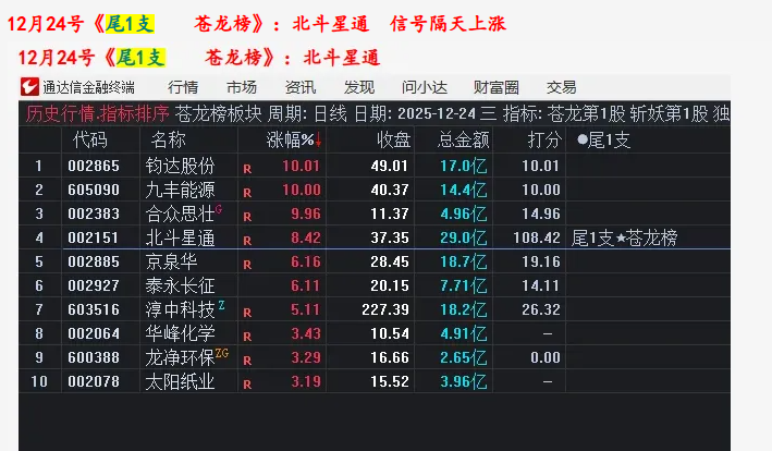 12月24号《苍龙榜》尾1支:北斗星通   隔天盘中拉大阳