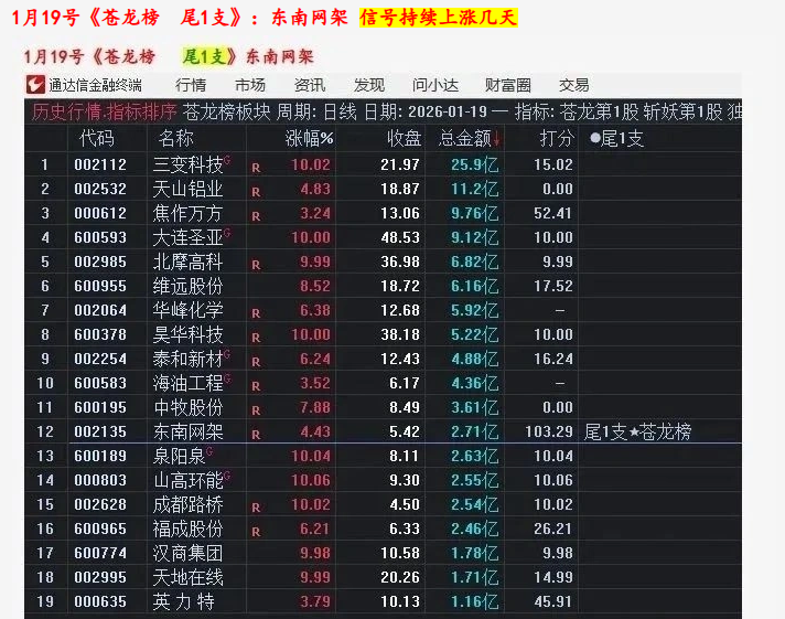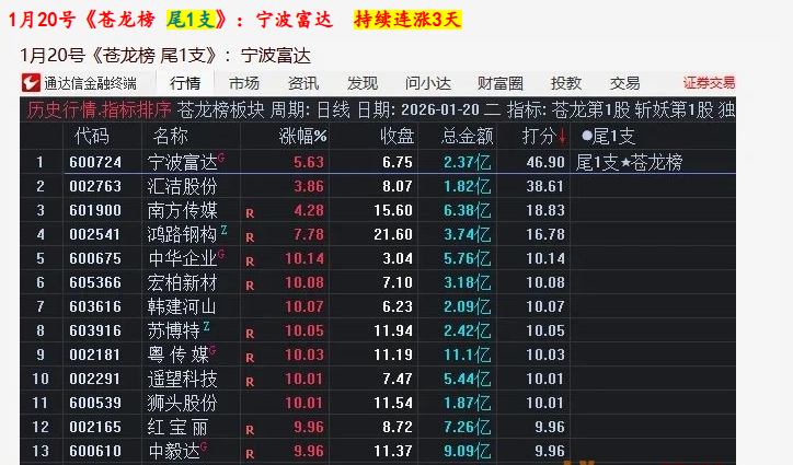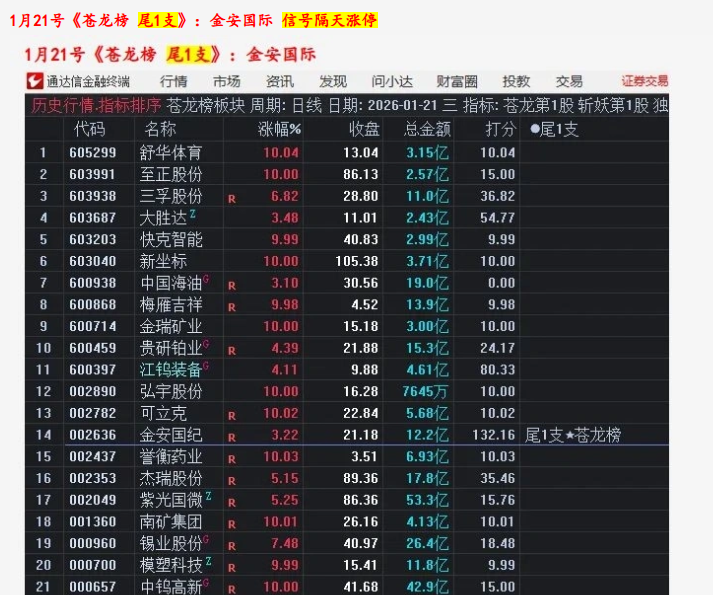 1月21号/20号/19号/16号《苍龙榜 尾1支》主板尾擒牛:金安国际 宁波富达