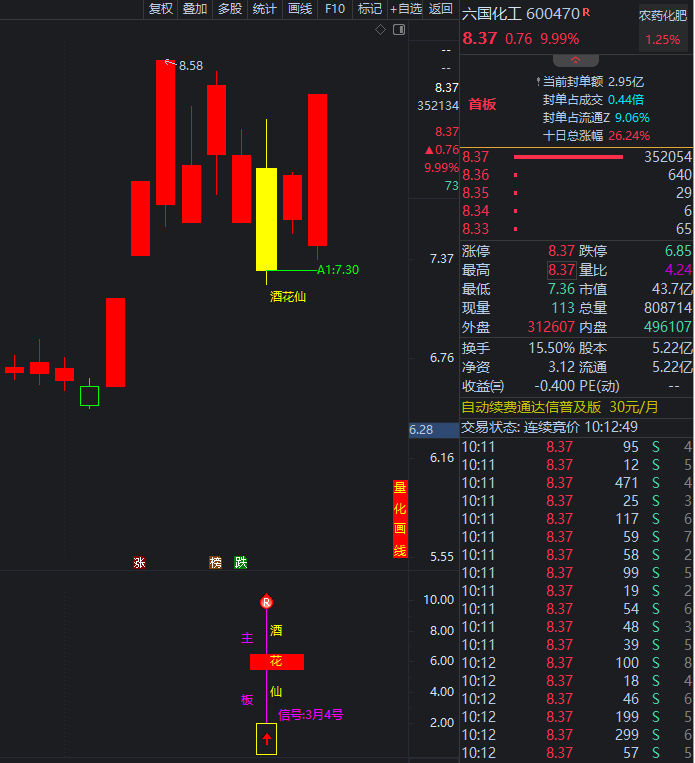 3月4号《酒花仙》主板尾擒牛:六国化工 信号至当前拉板10%