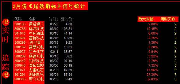 3.23期更新《尾妖 画线版》2026年/实时3个月记录 创业板尾1支擒牛